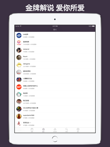 * 视频分类明确,达人推荐,达人最新更新视频一目了然。