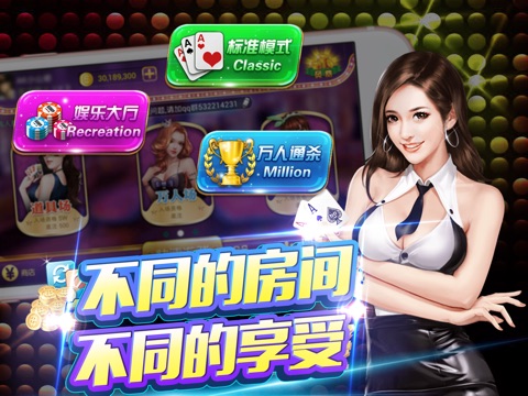 品质上,国内顶尖平面设计师、音效师打造精美游戏画面,还原配置棋牌动感音效。以其豪华阵容、