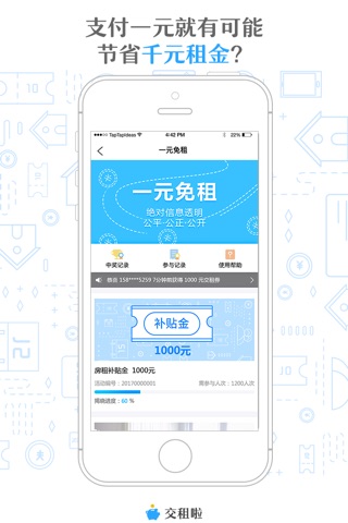 3、一元免租活动火热进行中,快来看看自己运气如何;