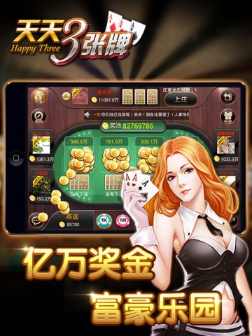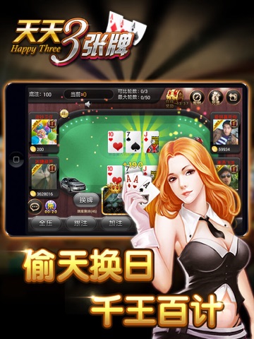 天天三张牌集经典炸金花玩法和趣味炸金花体验于一身,不仅有豹子王、同花、金花、顺子、时时彩、百乐、骰子、赛马等传统玩法,也集合了老虎机、水果机、千王场、至尊场、百人、私人房等多种游戏厅体验,让您畅玩在全民炸金花电玩城的海洋里。