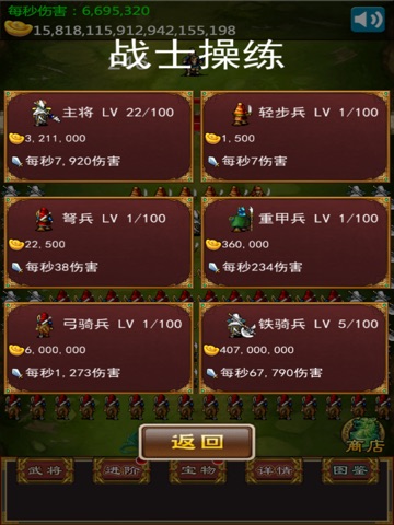 5.游戏中操练后,士兵、主将武力将大幅增长,让你在游戏中事半功倍。