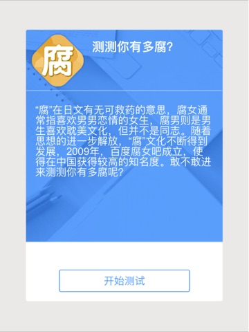 “腐”在日文有无可救药的意思,腐女通常指喜欢男男恋情的女生,腐男则是男生喜欢耽美文化,但并不是同志。随着思想的进一步解放,“腐”文化不断得到发展,2009年,百度腐女吧成立,使得在中国获得较高的知名度。敢不敢进来测测你有多腐呢?