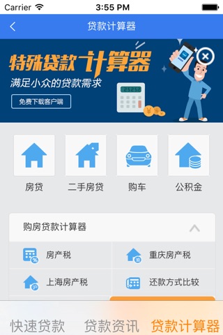 3、计算工具:车贷房贷商贷及公积金等借款借钱的月供及总利息计算;