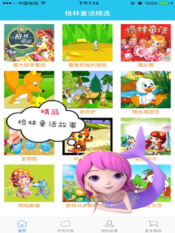 精选格林童话故事、安徒生童话故事全集共上百个个故事。