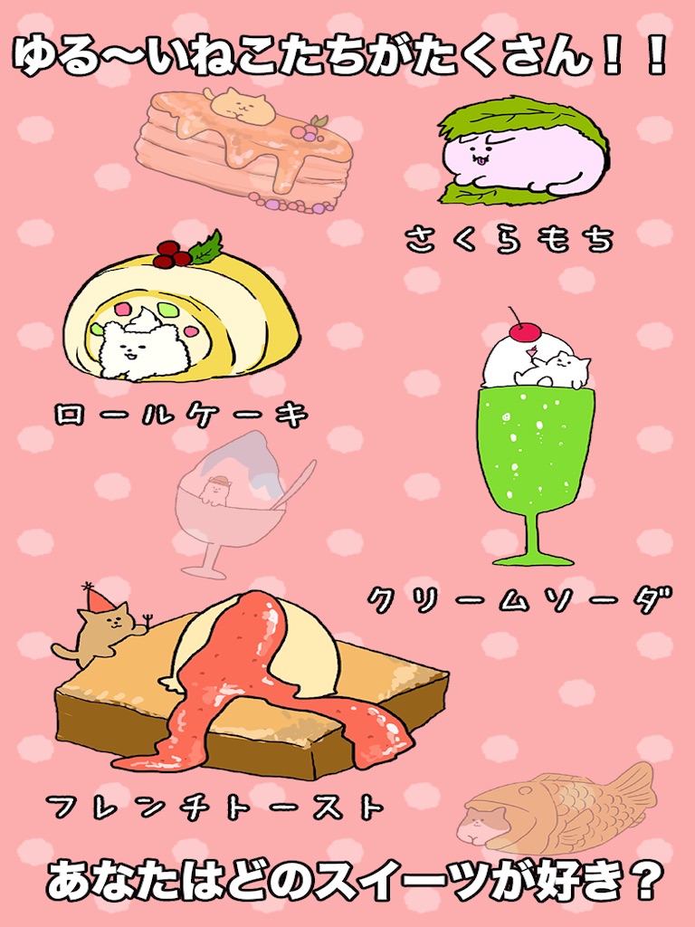 スイーツをたくさん食べるとゆるカワなねこ達の壁紙がもらえちゃう!