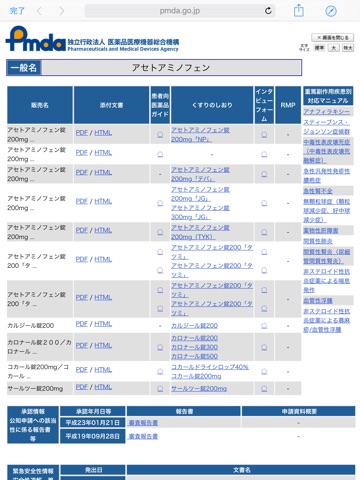 医薬品情報検索により以下の項目の閲覧が可能です。