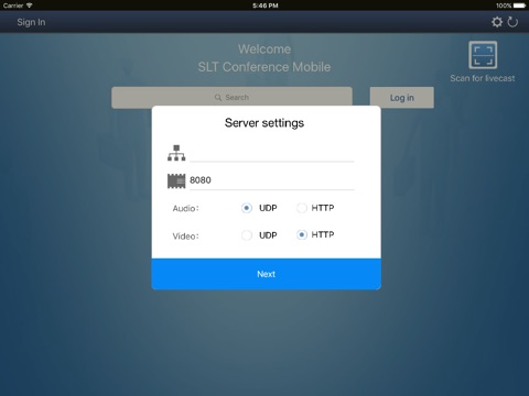 This app is a client of our conference system, it runs both on iPhone and iPad(iOS software version should be at least 5.0). Certainly, it can touch with other people in realtime, including watching each others video, talking with each other and watching others shared documents. It runs fine on Wifi or 3G network.