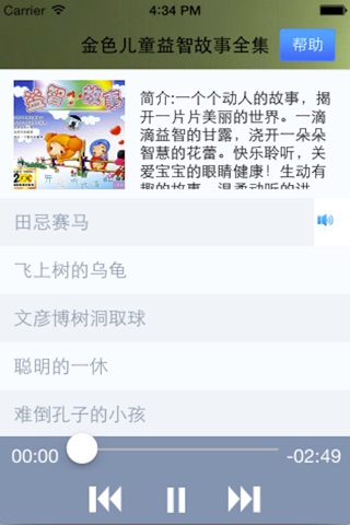 金色儿童益智故事全集,一个个动人的故事,揭开一片片美丽的世界。一滴滴益智的甘露,浇开一朵朵智慧的花蕾。快乐聆听,关爱宝宝的眼睛健康!生动有趣的故事,温柔动听的讲述,更能促进孩子智力发展。