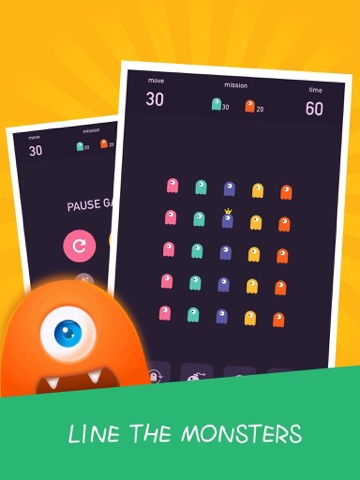 In the specified number of steps or within a specified period of time, you should slide your finger to line the same color Monsters and win the score points,and then you got the enough score,you will pass the level.
