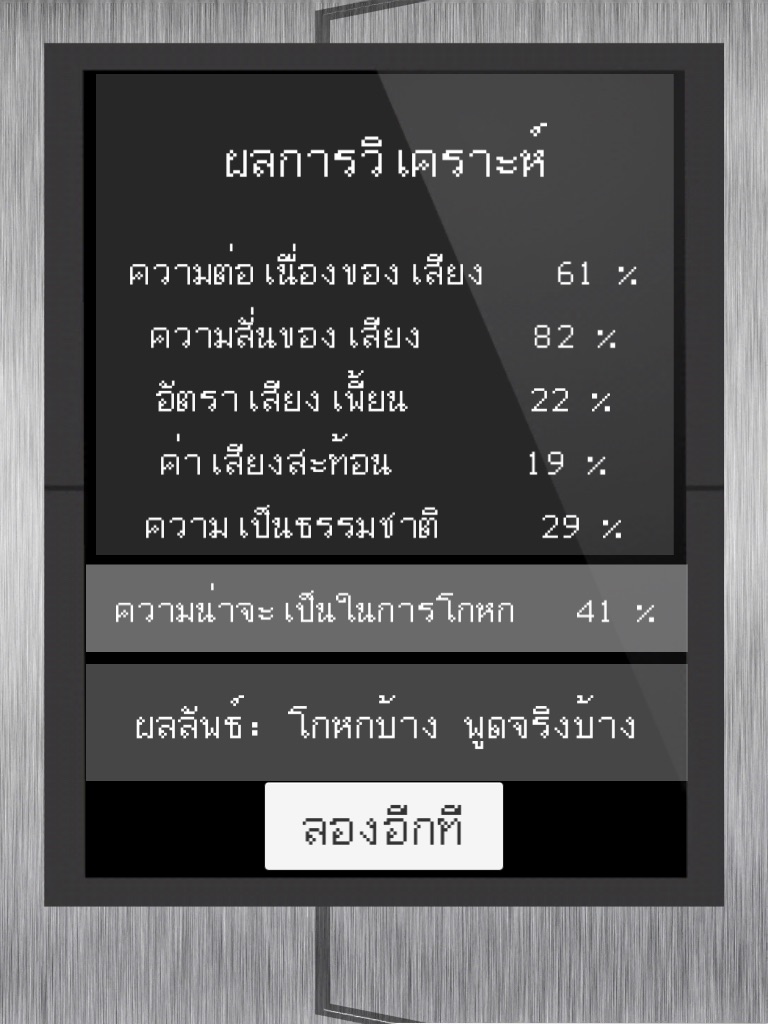 สามารถเล่นกับเพื่อนโดยตรวจสอบได้ภายในไม่กี่วินาที สามารถแกล้งว่าผู้พูด พูดโกหกหรือพูดความจริงอยู่
