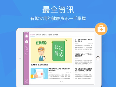 介绍女性健康的相关知识和内容。通过算法猜出您的兴趣,向您推荐最适合您的女性健康知识,同时您也可以向医生进行咨询。