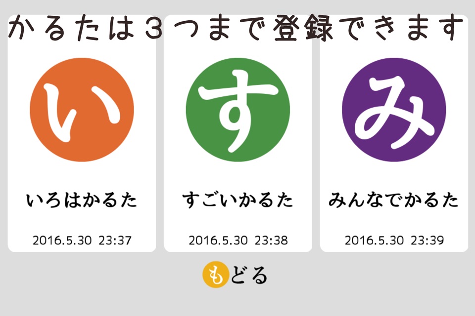 かるたは3つまで登録することができます。