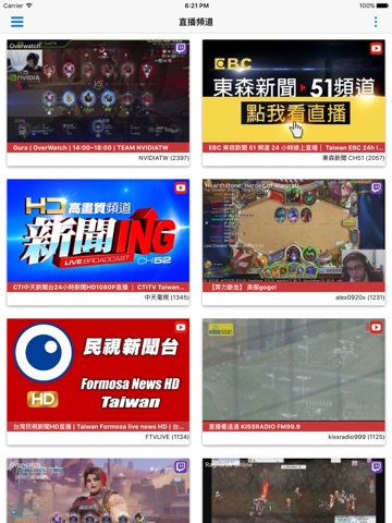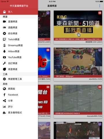 提供一站式 Twitch,Hitbox,Streamup,Youtube,高登,遊戲,電影,動畫,運動等等 實時直播服務。