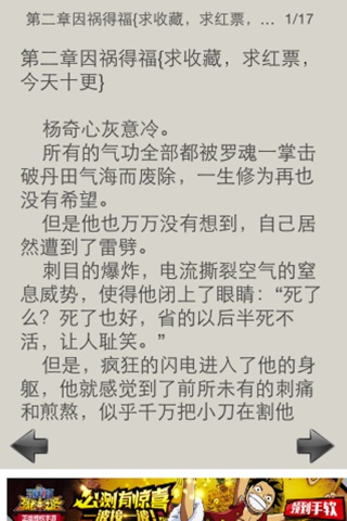 讲述了杨奇为了能和心爱的女人一起远走高飞,盗取了城主的伏龙丹。满欢欣喜的到达约定地点,却被告知自己只是被利用的棋子,随后还被追兵废了气功,天降闪电劈中了杨奇,助其获得神象镇狱劲后发生的故事。内含圣王,佛本是道,星河大帝,龙蛇演义,黑山老妖,阳神,永生,吞噬星空,陈二狗的妖孽人生,极品家丁,凡人修仙传等系列,全线免费,全部离线阅读。