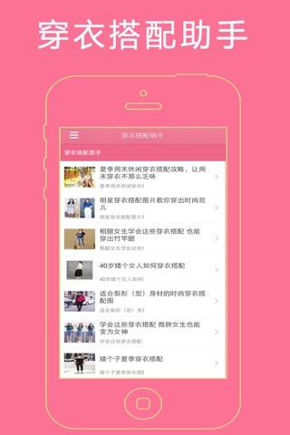 《穿衣搭配助手》汇集时尚先锋资讯,展现我们生活潮流——专注于我们实用的消费导向与讨论,集实用、互动、鉴赏性为一身的专业资讯平台,专为女性和男性提供服饰搭配、时尚打扮等。使您可以获取最新、最快、最全面的时尚潮流信息和消费导向,教你如何打扮自己,为日常打扮提供参考,让您全方位引领时尚生活。