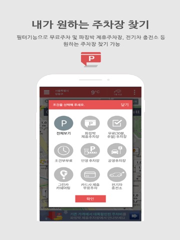 무료로 이용가능한 주차장들을 위치기반 및 상단 조건검색에서 제공~
