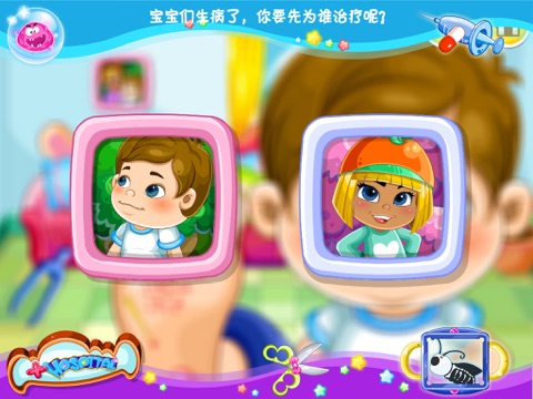 情景二:可以看到镜子中宝宝的表情,找到对应治疗的小工具进行治疗,全部治愈后进入下一关。