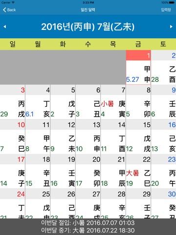 10) 일진보기 기능(음양력, 절기, 절입일 등)