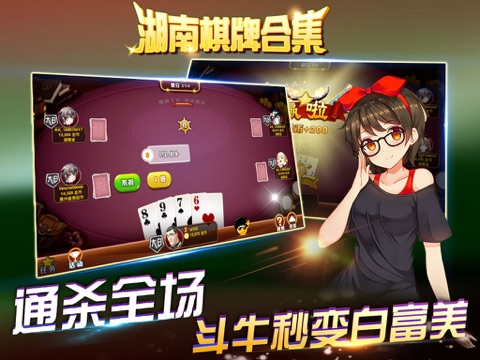 正版湖南棋牌合集主要集结湖南及全国较热门游戏其中包括(跑得快)(湖南跑胡子)(斗牛)(长沙麻将)(大字牌)(三打哈)(转转麻将)(常德王麻将)几款地方经典棋牌游戏,老少皆宜,是一款手机棋牌类的扑克牌,麻将类型游戏。灵活的出牌规 则,每一局的时间简短但是又不失乐趣