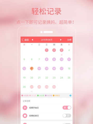 【轻松记录】简单的一个按钮操作,即可轻松记录月经日期;