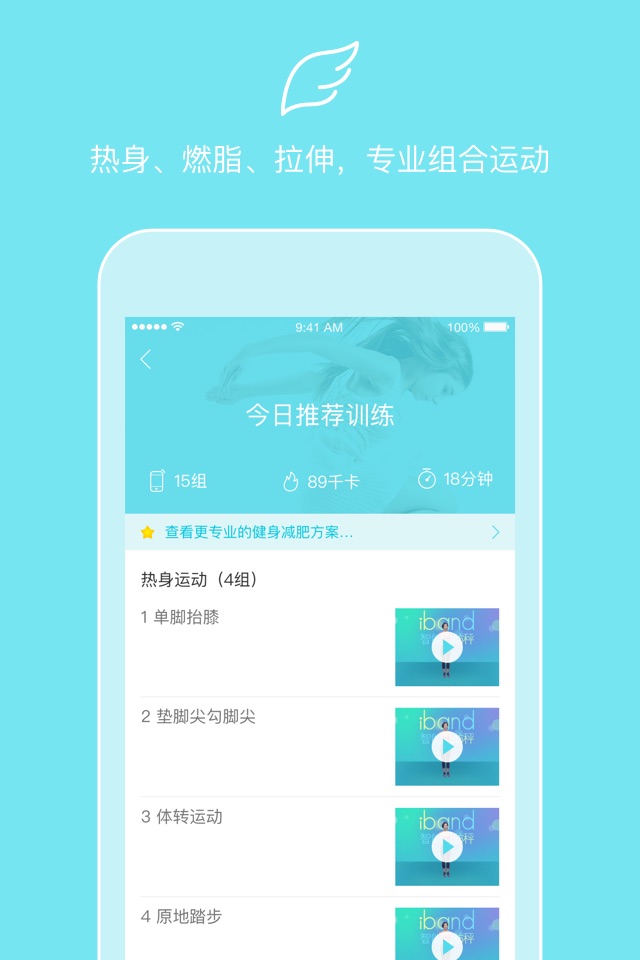 每日推荐一套完整的运动训练,女神级运动教练视频教学,亲自带你做。需要做几组?需要消耗多长时间?能燃烧多少大卡?所有信息都在一个画面里呈现,真正做到:所见即所得。