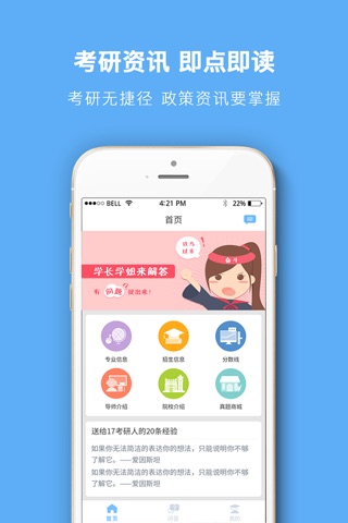 北京交通大学考研app第一时间发布最新、最全面的考研资讯,分享高分研究生学长学姐的考研经验,为你推荐考研最佳复习资料,这样为你节省浏览各大网站的时间,快捷方便,成为你考研路上的好伙伴!北京交通大学考研app还提供专业课考研一对一辅导,以学员个性需求为中心,根据学员自身特点,量身打造高级定制的考研辅导模式,全程针对性教学方案、动态调整学习计划,测评辅导效果,随堂随地答疑,充分弥补了多人课堂教育的不足,为学员提供最精细的服务,同样的时间,数倍的效果。