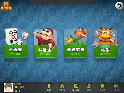 2016年最火爆的棋牌游戏!聚集了斗地主,牛牛,捕鱼,卡五星,同一个大厅,随意切换游戏!