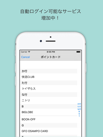 いろんなサービスのポイント情報を管理できるブラウザアプリです。