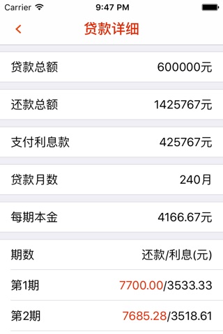 -计算结果可以查看每月还款明细