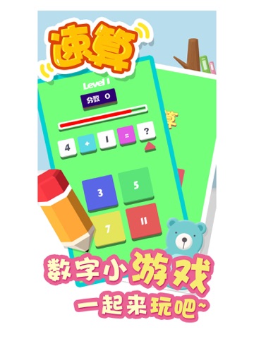 本游戏速算,是为儿童专门定制的一款0-100以内数字加减乘除,计算。