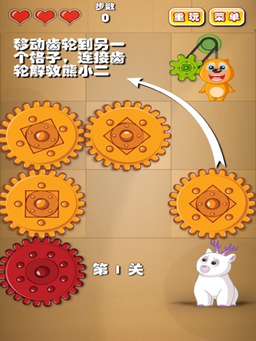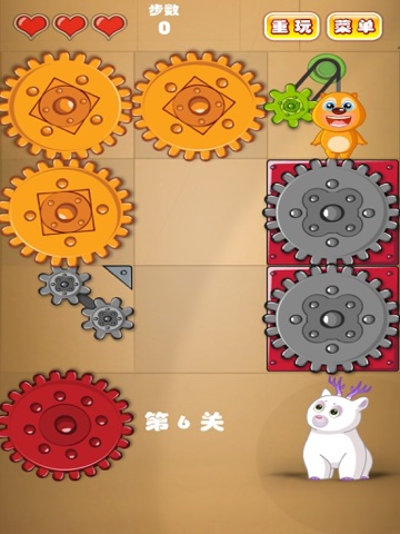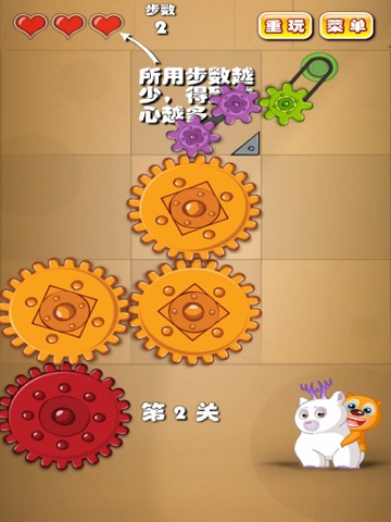 熊二在吃蜂蜜的时候被光头强抓住用绳子吊起来了。大家快动脑筋使用齿轮组合在一起来解救熊二吧!