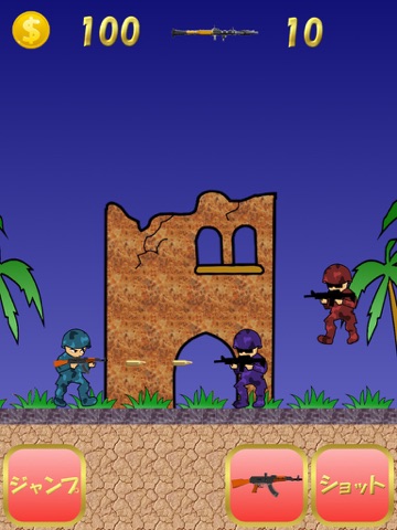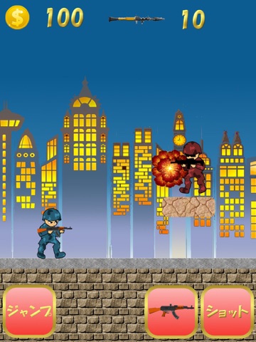 ジャンプで敵の銃弾をよけて、ショットボタンで攻撃します。