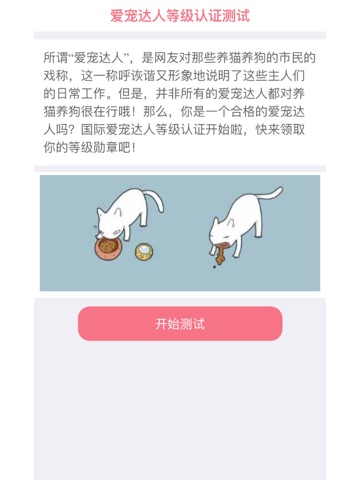 "所谓“爱宠达人”,是网友对那些养猫养狗的市民的戏称,这一称呼诙谐又形象地说明了这些主人们的日常工作。但是,并非所有的爱宠达人都对养猫养狗很在行哦!那么,你是一个合格的爱宠达人吗?国际爱宠达人等级认证开始啦,快来领取你的等级勋章吧!