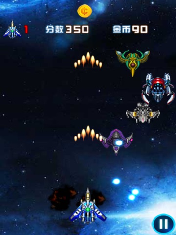 游戏中可以随机的吃天从天上掉下来的金币和宝石(等于10个金币),积累金币可以升级生命力更强,更漂亮的飞机