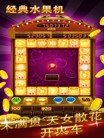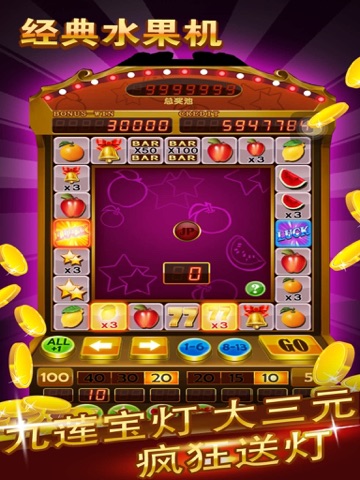 水果机老虎机是一款街机老虎机游戏,是风靡机厅三十年的游戏,本游戏为街机水果机完美移植版本,与街机水果机游戏玩法和界面基本一致,出分率高,送灯多,以小博大,受到广大游戏爱好者的喜爱。游戏出分送灯有数百种组合,大满贯,开火车,九莲宝灯,大三元,纵横四海,大四喜,天女散花,天龙八部,并独创奖池玩法,中大满贯时赢取高额奖池全部彩金,令人大呼过瘾!