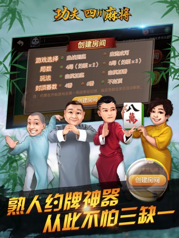 功夫麻将,采用国内正宗的四川麻将玩法,真人方言语音,逼真特效音效,川味十足,风靡全国!