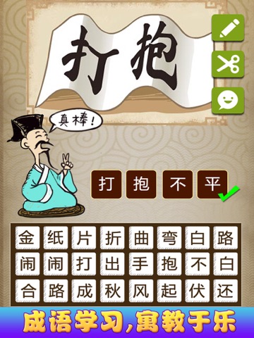 这是一款益智休闲成语学习应用,通过看图猜成语来学习成语,寓教于乐,开心学习成语解释、了解成语典故和出处,让学习成语从此不再枯燥。