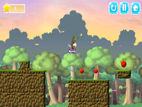 这是一款跑酷类的跳跃游戏,玩家在游戏中操控一名探险者,点击屏幕进行跳跃,千万要注意不要跳空,然后顺利吃到一路上的各种水果就可以了。