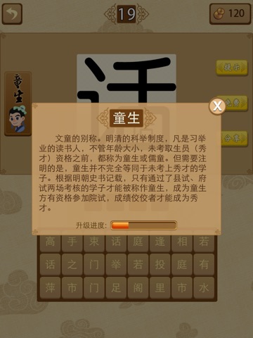 游戏通过一张图片来猜测相关的成语,还可以通过微信分享、求助你的朋友们。