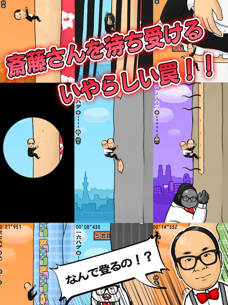 画面タップのみで斎藤さんがのよじのぼる簡単操作