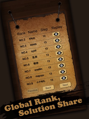 Every level has a solution of minimal slides. The best score of each level is recorded.