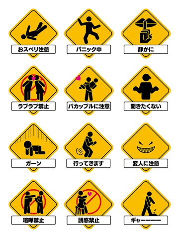 まるで道路標識のような動くステッカーがiMessageに登場!「○○注意!」「○○禁止!」など、普段でも使えるおもしろワードが盛りだくさんです。