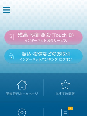 インターネットバンキングへのログオン、店舗・ATM検索なども本アプリから便利にご利用いただけます。