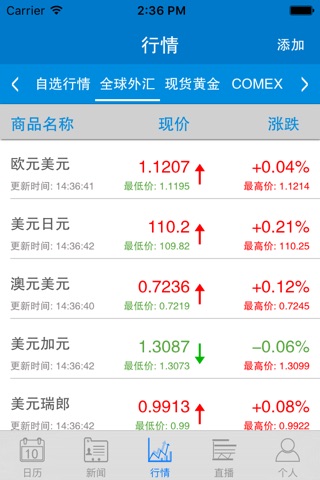 【行情】贵金属、原油、股市等行情任你选择,添加你喜欢的内容即可随时随地关注行情动态,查看走势图。
