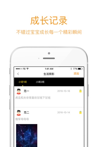 【成长记录】帮您记录宝宝在家和在园的成长点滴,让您不错过孩子的每一个精彩瞬间,所有记录每学期定制化成成长档案,为您提供孩子成长的时光记录。