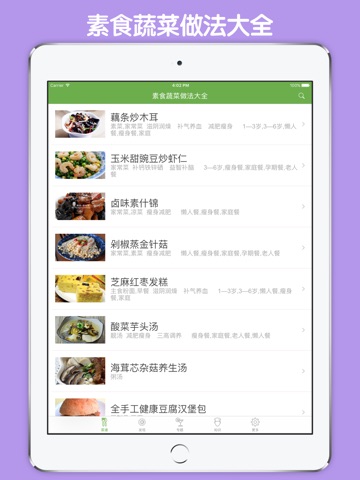 ● 本APP以养生为核心内容,精选数百道养生素食美食,包括素菜、素饭、素面、素汤等,将素食美食全部收录,让你在不使用肉的情况下依然能做出健康的美食。