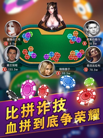 联网游戏,无需凑人,无需等待,超低流量占用,随时流畅游戏!联网即可和上万真实玩家一起诈金花,游戏节奏快,碎片时间都可以利用起来,走到哪玩到哪!