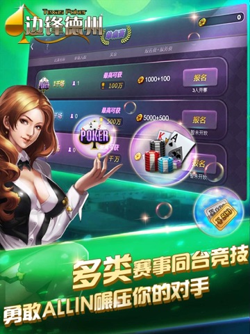 边锋棋牌盛大出品,2016年超人气在线德州扑克,移动、网页、PC多端扑克玩家齐聚一堂,争夺德州扑克王者之名!