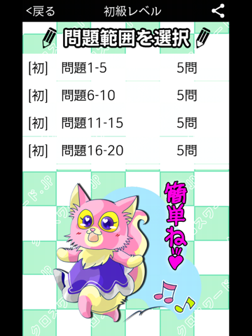 問題選択範囲は初級~上級まで全て一緒です。