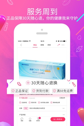 2.商品齐全:涵盖隐形眼镜、美瞳、美妆、护理用品、计生情趣、保健品等,任你挑;